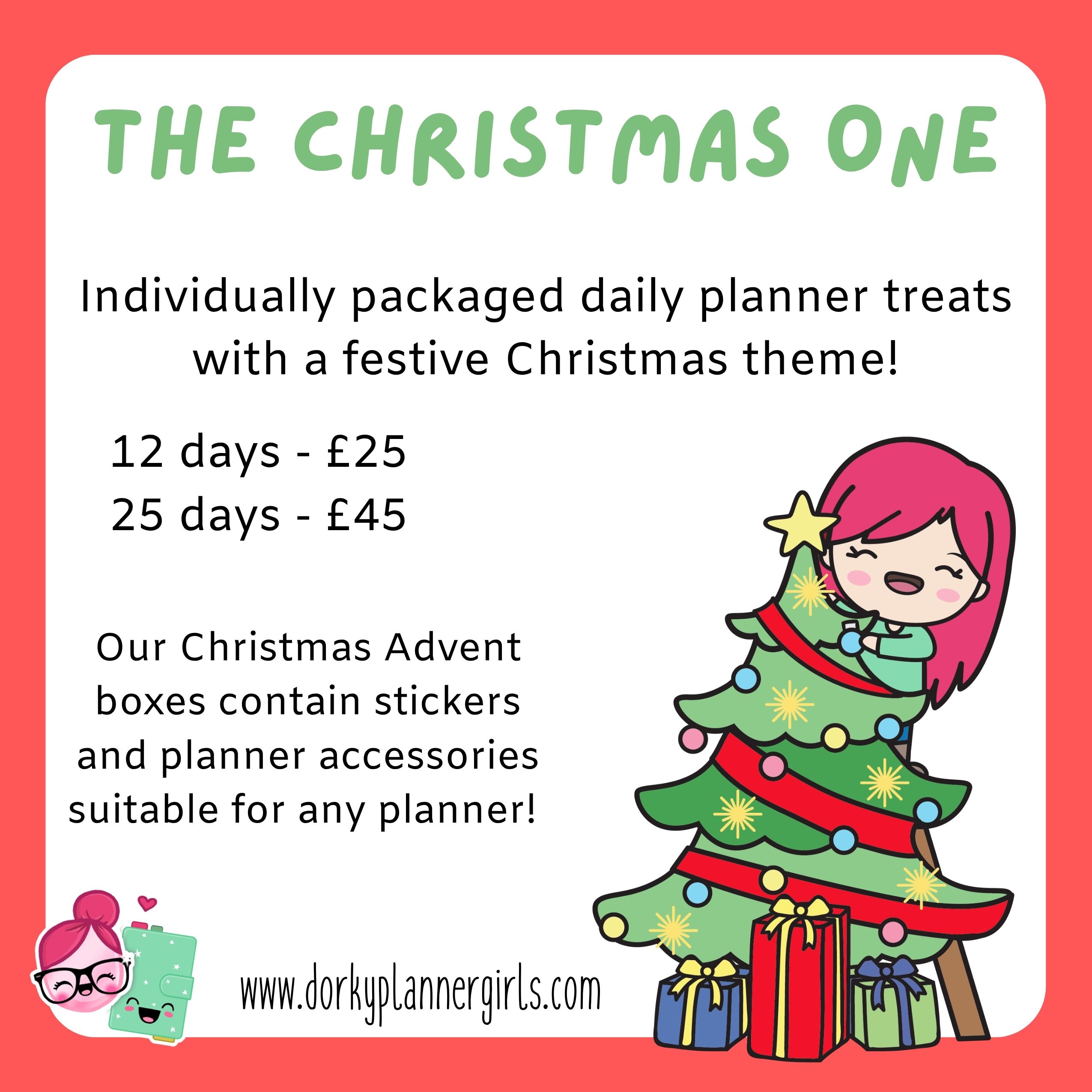 Our best selling advent boxes are back again for another year. Each day contains a sheet of planner stickers or a planner accessory. Perfect for planner girls who want a daily treat of calorie-less goodies instead of chocolate this year.